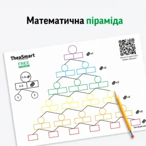 Математична піраміда з кубиками — це розвиваюче друковане завдання формату А4 для дітей, яке поєднує гру та навчання.