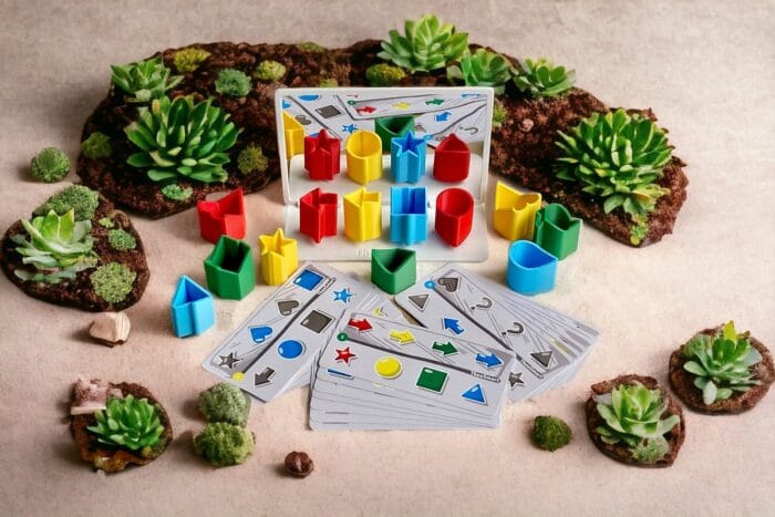 Дзеркальна Ілюзія” від TheaSmart – це надзвичайна гра, призначена для розвитку просторової та візуальної уваги у дітей. Унікальність гри полягає в тому, що фігури спроектовані таким чином, що одночасно в дзеркалі та в живу вони відтворюють різні геометричні фігури, створюючи цікаву ілюзію для дитини.